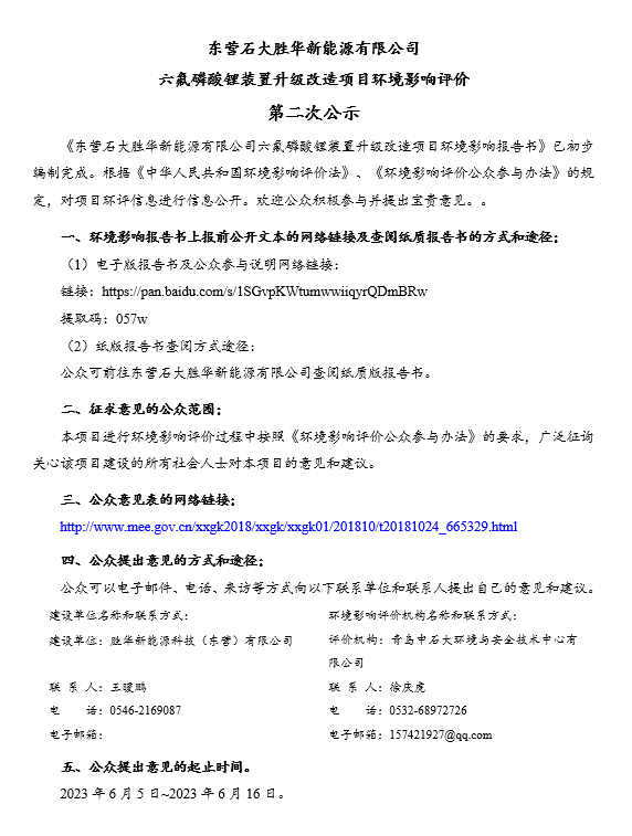 上一篇:胜华新能源科技(东营)有限emc网页版登录环境信息公开表(2023年第二季度) 下一篇:东营石大胜华新能源有限emc网页版登录 六氟磷酸锂装置升级改造项目环境影响评价公众参与第一次信息公开的公告
